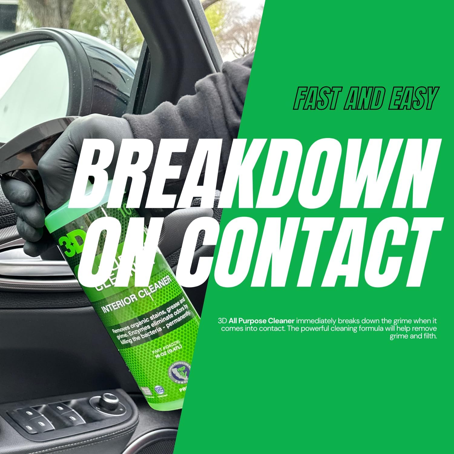- Safe for You, Safe for Your Ride: Unlike harsh cleaners that risk damaging surfaces or irritating your skin, 3D All Purpose Cleaner is biodegradable, non-toxic, and formulated with Green Technology. It’s tough on grime, but always safe for your car’s materials—and for you