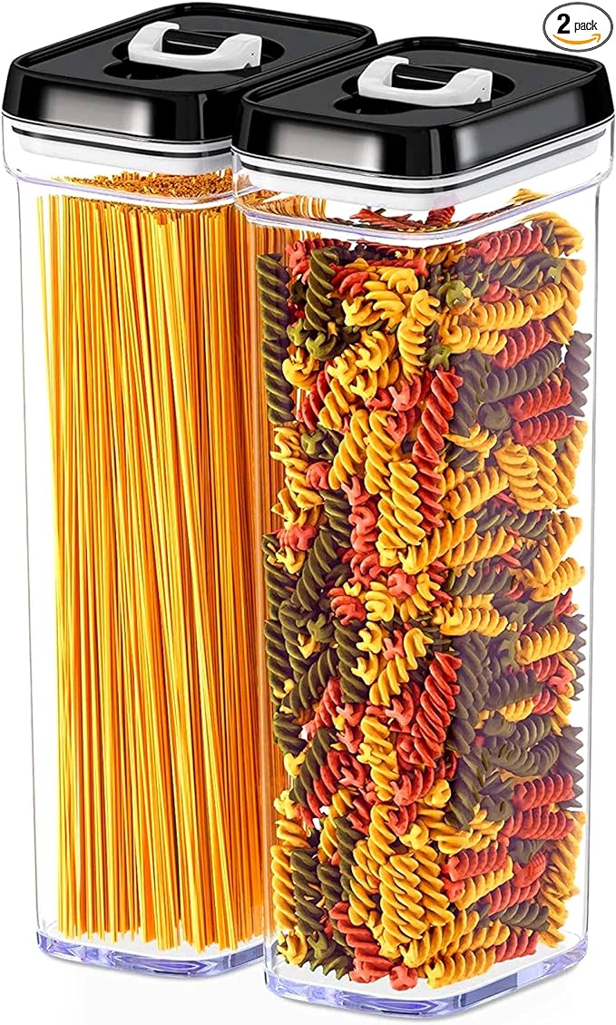 DWËLLZA KITCHEN Pasta Storage Containers for Pantry Airtight - 2 Pc Spaghetti Container Storage - Ideal for Spaghetti & Noodles, Kitchen Pantry Organization and Storage - Keeps Food Fresh & Dry