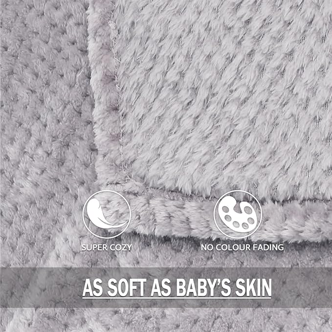 Exclusivo Mezcla Fleece Throw Blanket Extra Large, Super Soft and Warm Blankets for Couch, Sofa and Bed Waffle Textured, Cozy, Fuzzy and Lightweight (Light Grey, 50x70 Inches)