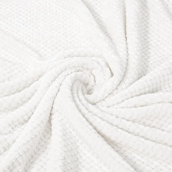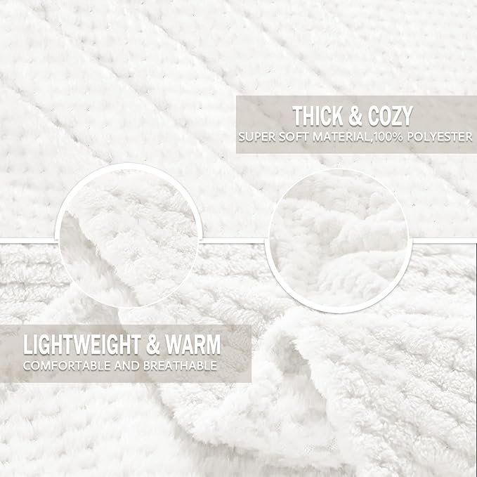 Exclusivo Mezcla Fleece Throw Blanket Extra Large, Super Soft and Warm Blankets for Couch, Sofa and Bed Waffle Textured, Cozy, Fuzzy and Lightweight (Off White, 50x70 Inches)