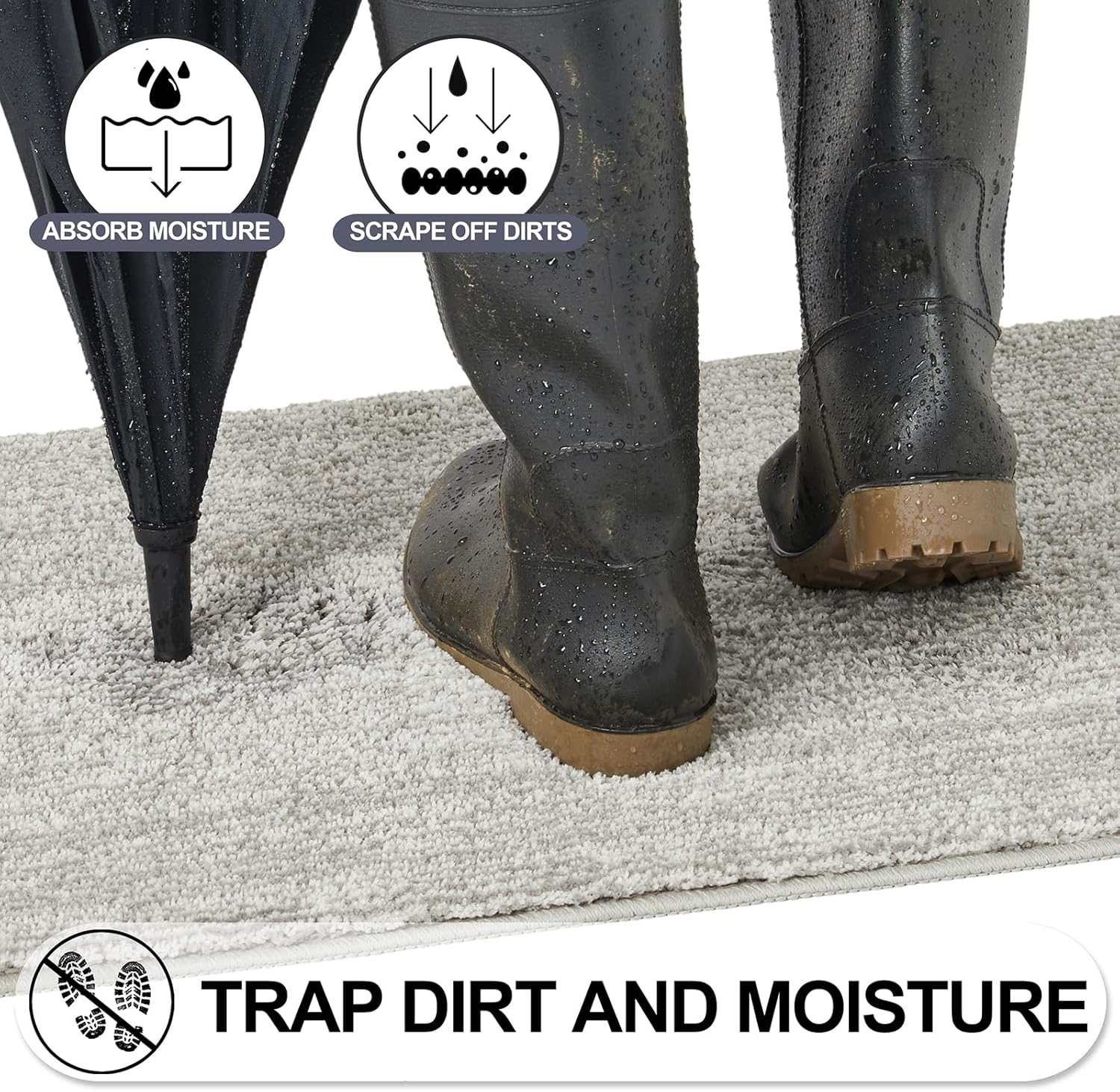 REFETONE Indoor Doormat, Front Door Mat 24"x36" Absorbent Rubber Backing Non Slip Back Door Mats, Washable Low-Profile Inside Floor Mat Door Rugs for Entryway, Resist Dirt Mud Mat for Dogs, Grey