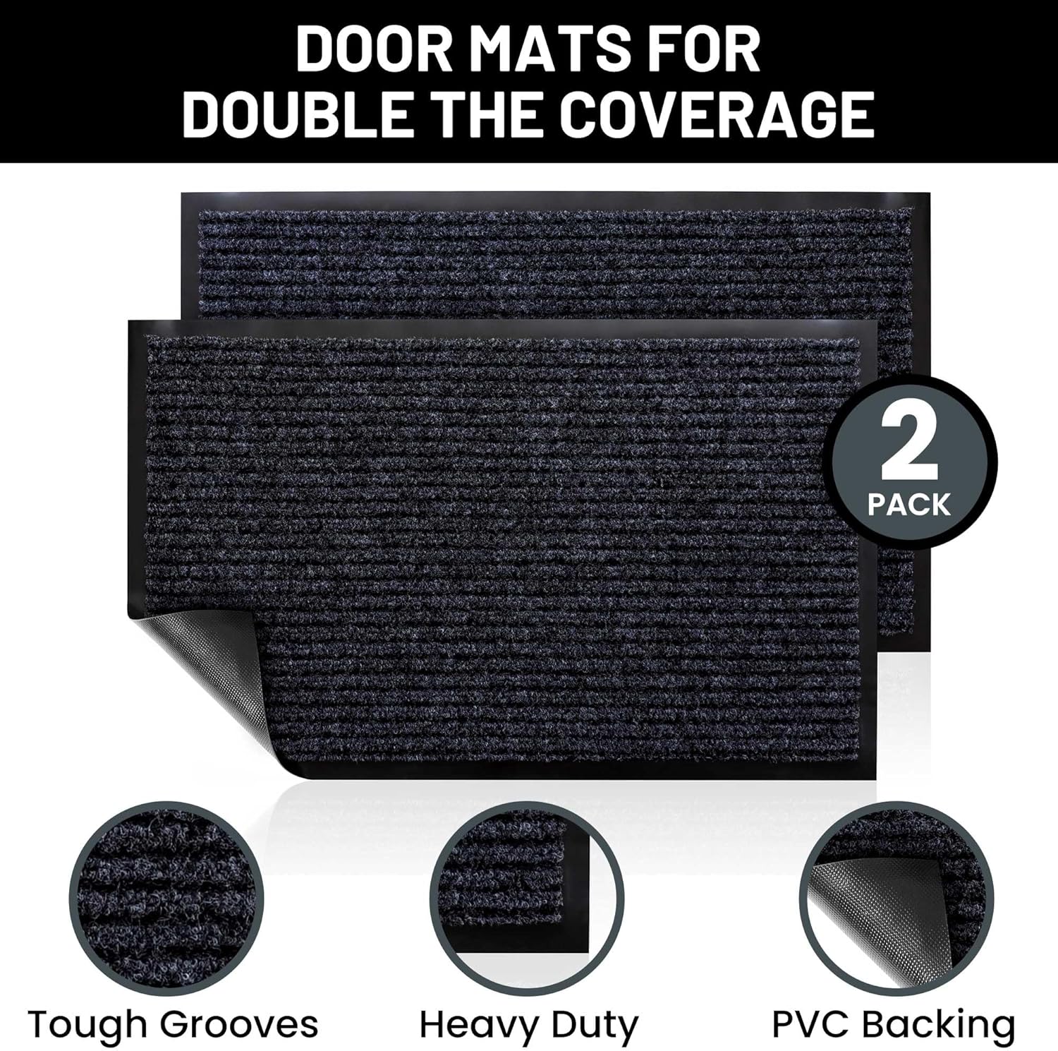- Includes 2 Larger Indoor Outdoor Floor Mats: Enjoy two amazing heavy duty high quality ribbed polyester door mats (Larger 36" x 24") that will be perfect welcome for the everyday home. Amazing value 2-Pack.