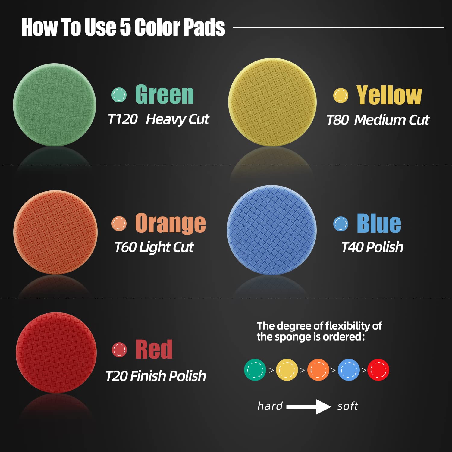 - 【NOTES】All sponge polishing pads should be cleaned and leveled before use to ensure that there are no particles left. After use, polishers should be cleaned immediately and dried in a cool place.
