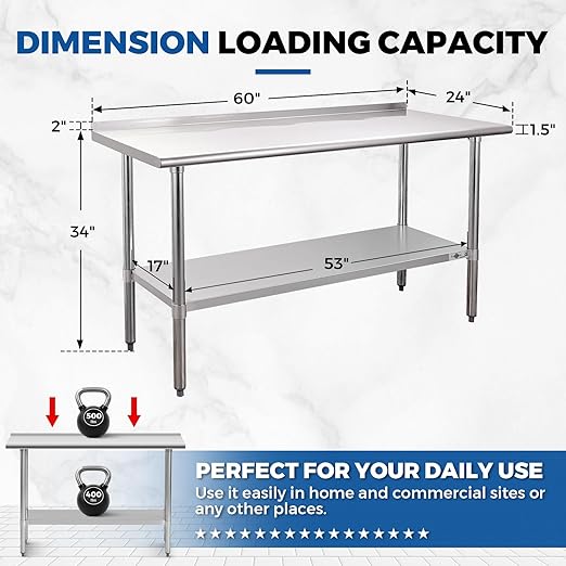 - Advanced Stainless Steel: 18-gauge type 430 stainless steel work table, corrosion and wear resistant, and also will not easily deformed. Smooth surface is easy to clean, and the 1 1/2 Inches backslash effectively protects your walls from scratches and dirty water, ensuring a clean and tidy kitchen
