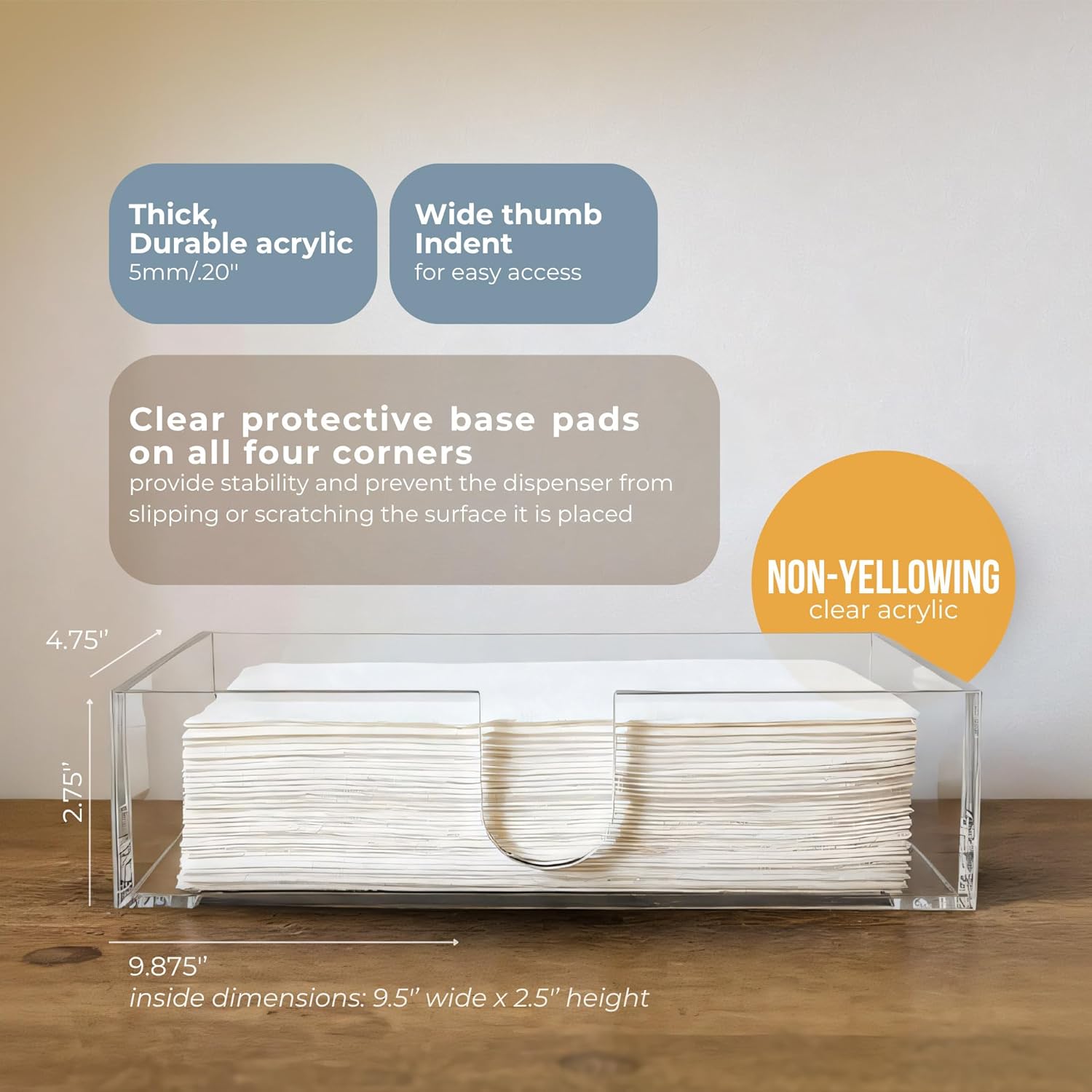 Sicily Acrylic Napkin Holder (5mm) Multifold Paper Towel Dispenser (9.87”W x 4.75”D x 2.75”H) Hand Towel Holder for Bathroom and Kitchen Countertop