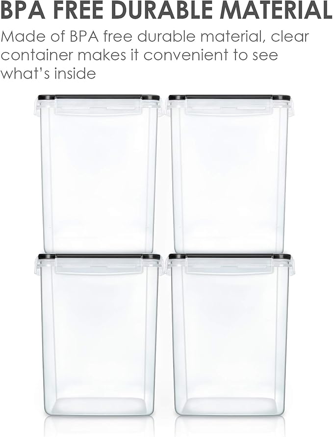 Vtopmart 4 PCS Large Food Storage Containers 5.2L / 175oz, 4 Pieces BPA Free Plastic Airtight Canisters for Flour, Sugar, Baking Supplies, Rice with Lids, 4 Measuring Cups and 24 Labels, Black