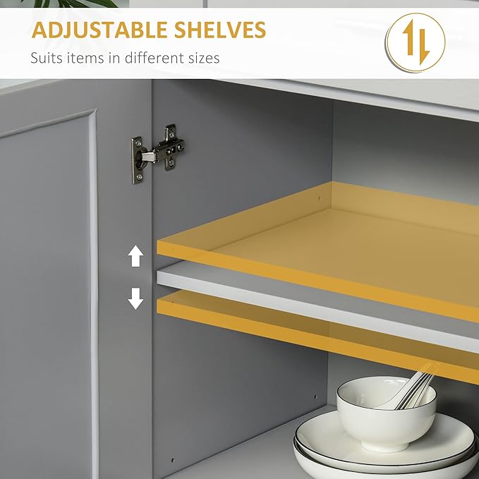 - Sufficient Space for Storage and Display: This kitchen storage cabinet features 2 large cabinets with doors for kitchen utensils and plates and a utility drawer for small accessories.