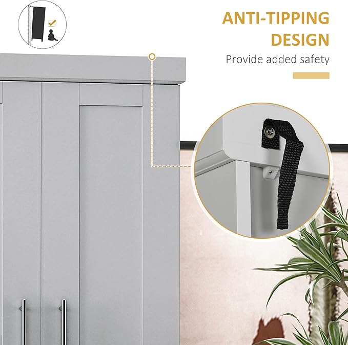 - Safety First: This storage cabinet with doors and shelves features an anti-tipping design for added stability and can be easily secured to the wall. Crafted from solid particle board and MDF, it ensures durability, easy maintenance, and long-lasting use.