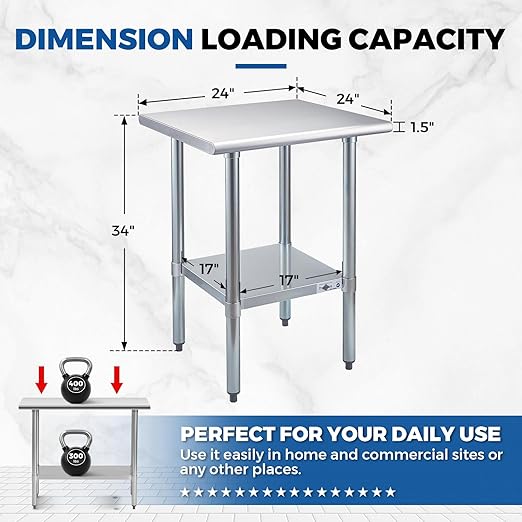 Profeeshaw Stainless Steel Prep Table 24x24 Inch NSF Commercial Work Table with Undershelf Heavy Duty Table for Kitchen Restaurant Home Hotel