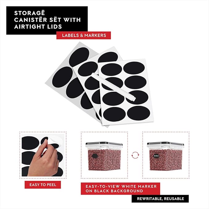 - Reusable Labels & a Marker: Never confuse flour with powdered sugar or baking powder with baking soda again. These reusable labels allow you to switch contents at any time.