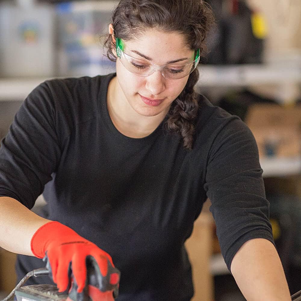 - Anti-Scratch: Full coverage and Scratch Resistant coating for the best protection for your eyes and for the maintenance of the glasses. These safety glasses for men or for women are designed for all around visibility and have a high level of direct and peripheral eye protection from flying particles or debris. Exceeds ANSI Z87.1 standards, embossed on the temple.