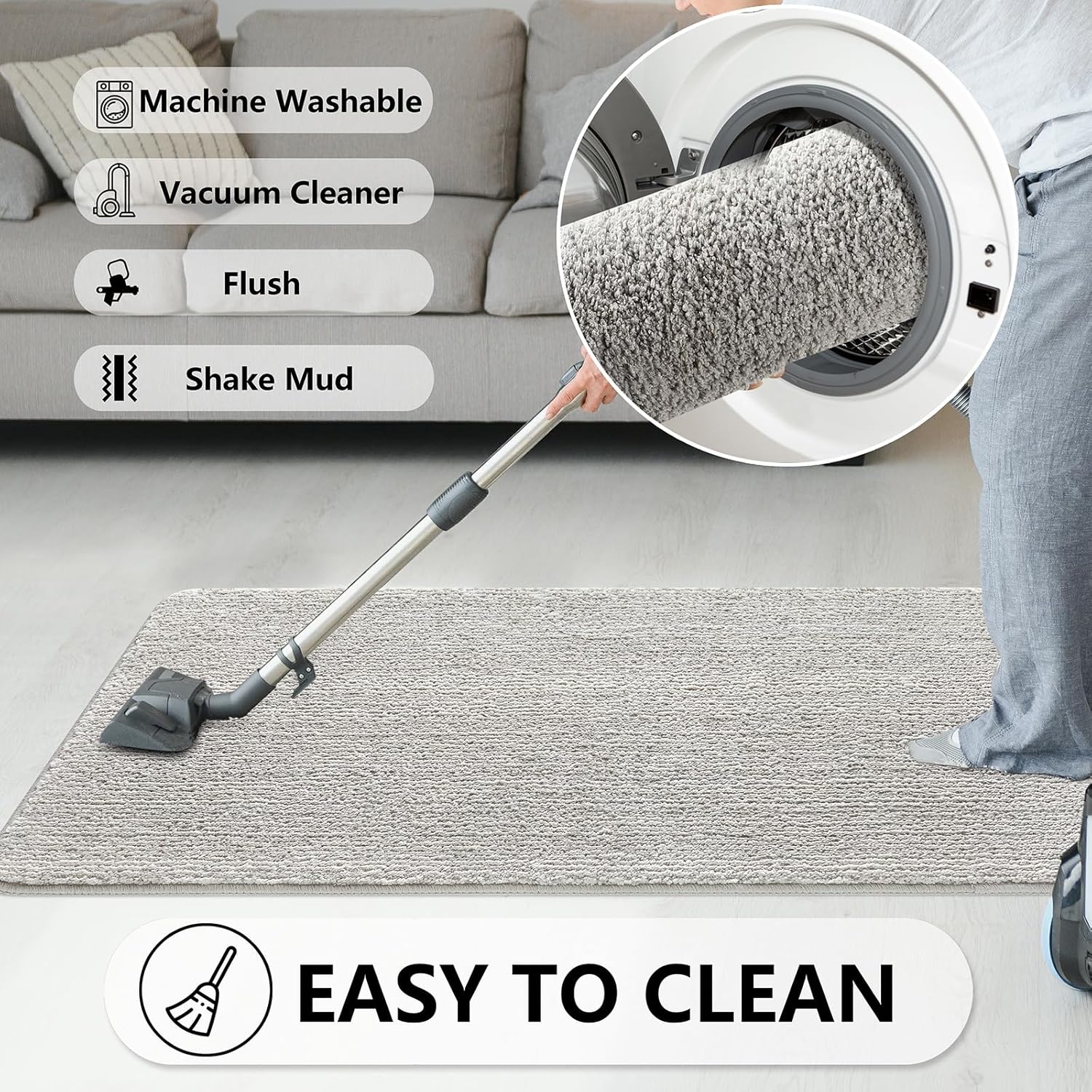 REFETONE Indoor Doormat, Front Door Mat 32"x48" Absorbent Rubber Backing Non Slip Back Door Mats, Washable Low-Profile Inside Floor Mat Door Rugs for Entryway, Resist Dirt Mud Mat for Dogs, Grey