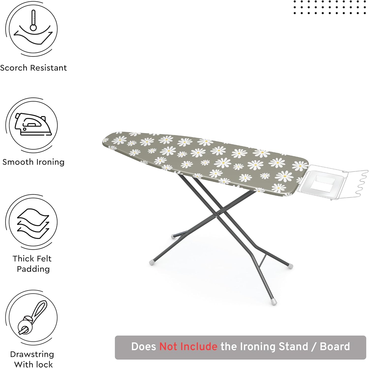 Encasa XO Ironing Board Cover and Pad 42"x14" - Thick 3mm Felt Padding, Drawstring Tightening & Lock, Easy Fit, Scorch & Stain Resistant, Fits Medium Ironing Board - Daisy Grey