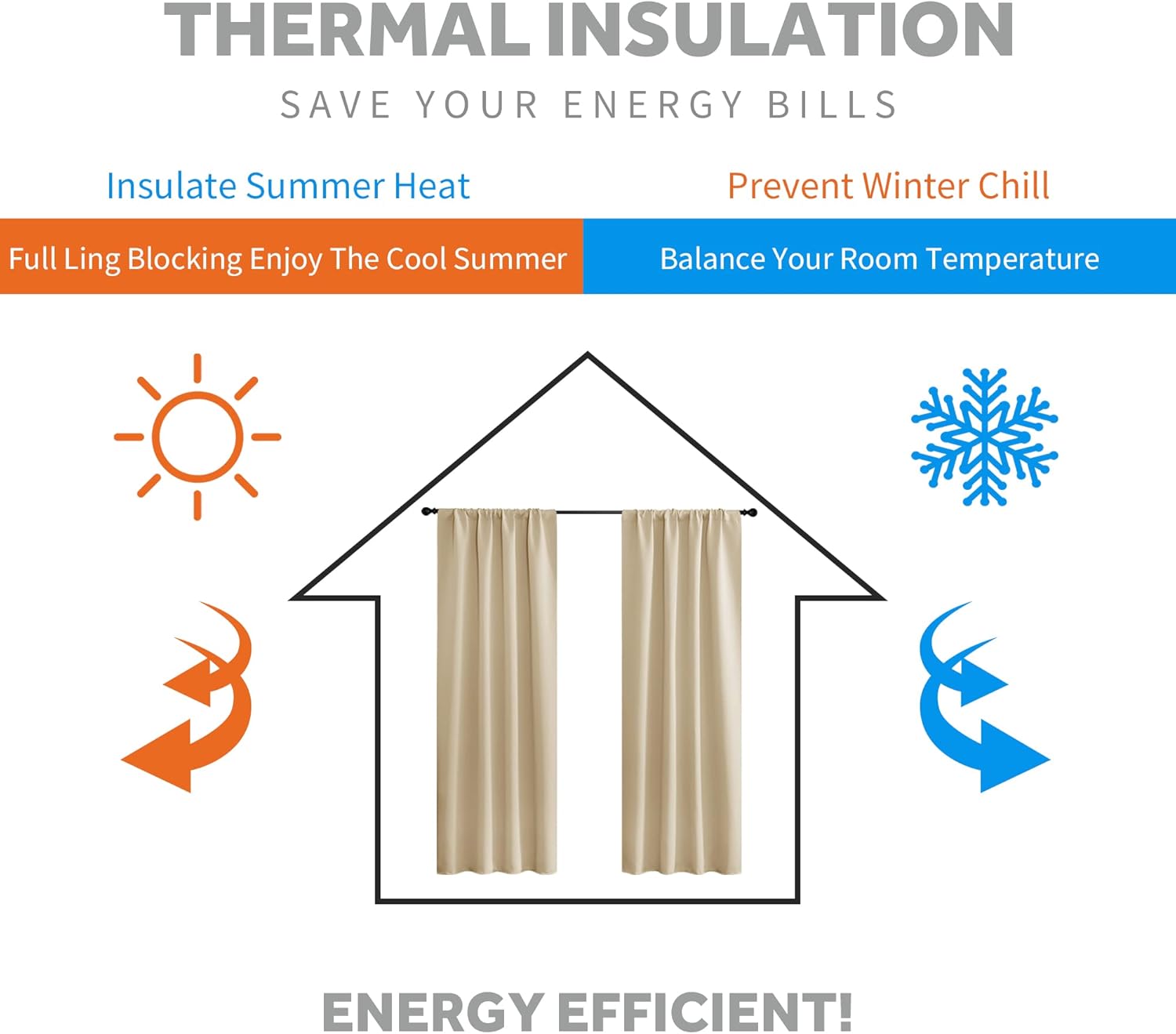 - LIGHT BLOCKING - Curtains block 85-95% sunlight and UV rays (Dark color works better) for maximum privacy and undisturbed sleep. Thermal property of the blackout curtains ensure that the room temperature is regulated. Protect your indoor furniture from directly exposing to the sun.
