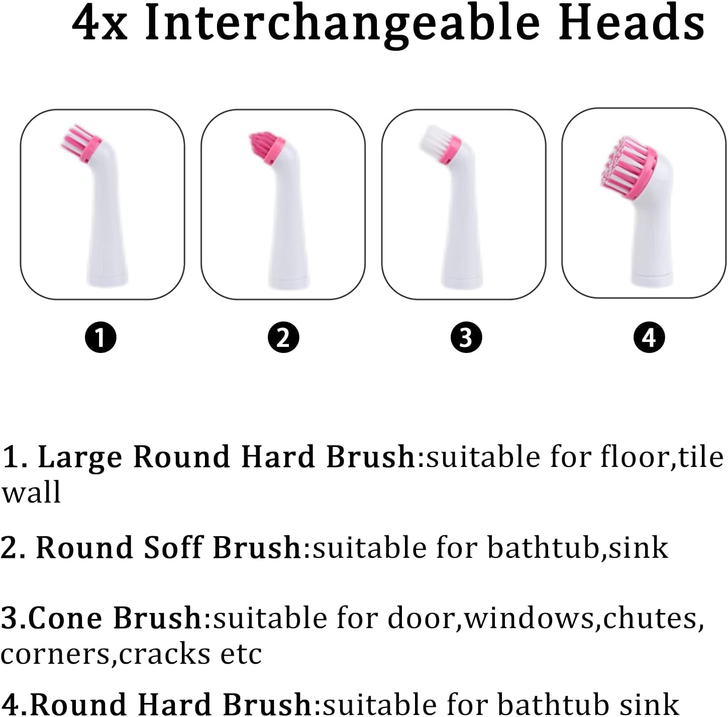 Electric Cleaning Brush with 4 in 1 Multiple Brush Heads,Indoor Household Cordless Motorized Brush for Bathroom Toilet Kitchen Tile Crevice