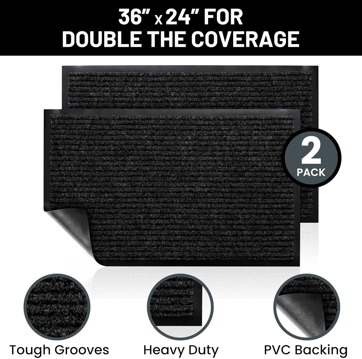 - Includes 2 Larger Indoor Outdoor Floor Mats: Enjoy two amazing heavy duty high quality ribbed polyester door mats (Larger 36" x 24") that will be perfect welcome for the everyday home. Amazing value 2-Pack.