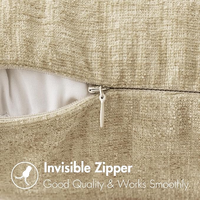 - INVISIBLE ZIPPER: Zipper is hidden and works smoothly. The color of zipper is the same as pillow cover.