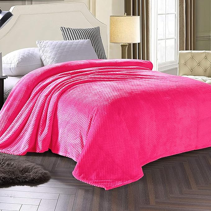 Exclusivo Mezcla Fleece Bed Blanket King Size, Super Soft and Warm Blankets for Couch, Sofa and Bed Waffle Textured, Cozy, Fuzzy and Lightweight (Hot Pink, 90x104 Inches)