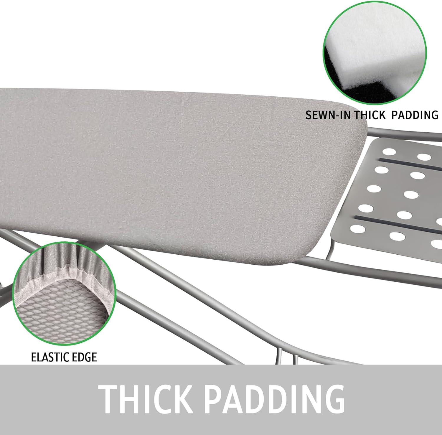 - DURABLE AND THICK PADDING MATERIAL:with premium thick padding generously wrap the board,this ironing board cover and pad is durable and will not wear out easily. 6mm extra thick felt padding radiates heat and steam evenly, improving ironing safety and efficiency