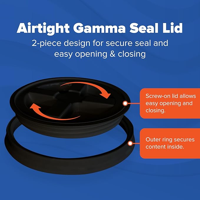 - Airtight and Leak-Proof Protection – The screw-on Gamma Seal lid features a double-gasket, leak-proof design, locking out moisture and air to keep contents fresh. Ideal for bulk food storage, rice, flour, sugar, and dry goods, ensuring long-term preservation.