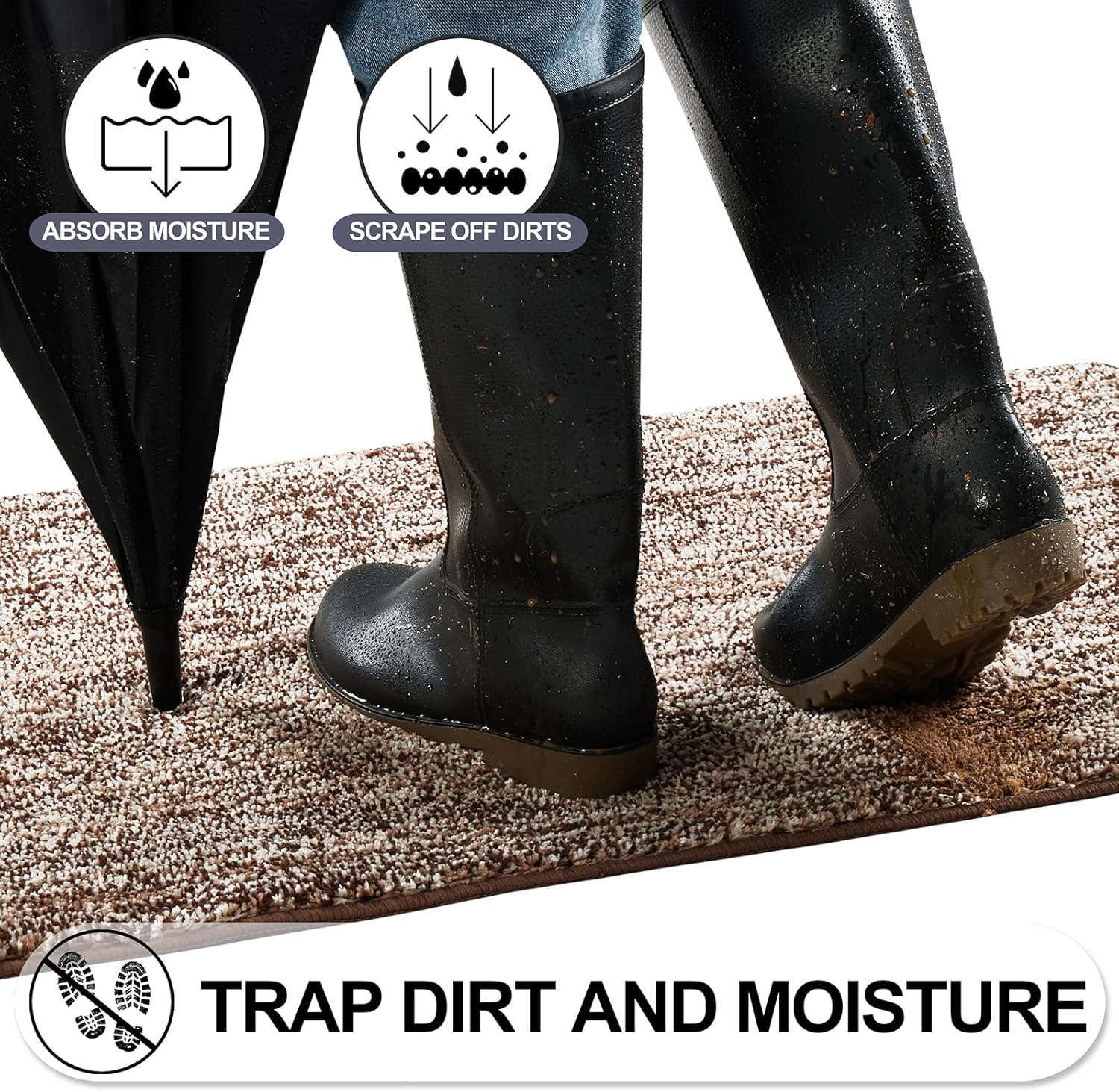 - 【TRAP DIRT & ABSORB MOISTURE】Eliminates dirty and wet foot prints when you entering the house. REFETONE door mat using double layer technology which helps to scrap off dirt, water, dust, grit, mud, sand, grass, slush, snow and absorb moisture from shoe. Say goodbye to messy floors and keep your indoor environment clean and tidy. Indoor doormat perfect for high-traffic areas and widely used for all seasons, especially for the rainy, snowy, or muddy weather. Enjoy your home every time!