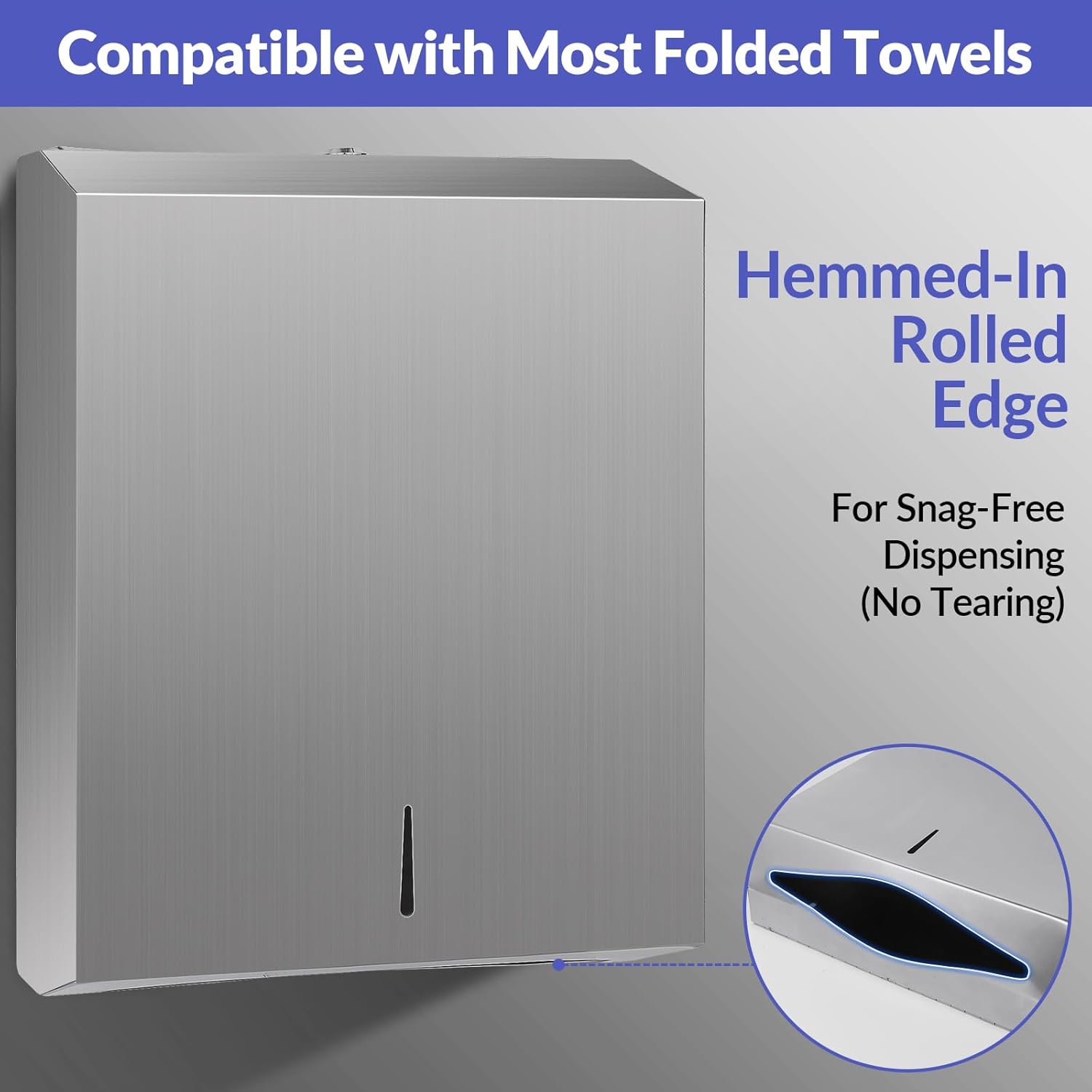 - Anti-tear protection - Towel dispensing slot have a fully hemmed-in rolled edge for snag-free dispensing (no tearing) and user safety (NOT in other brands)
