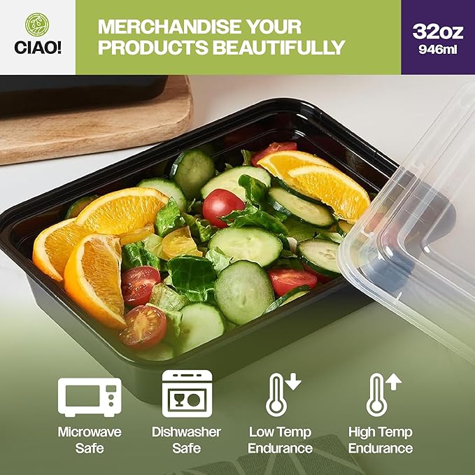 - Ciao! containers are great for all meal prep applications as well as your take out needs for your restaurant or foodservice business. They also merchandise products well with the clear lids which are conveniently combo packed with 150 bases and 150 lids in each case