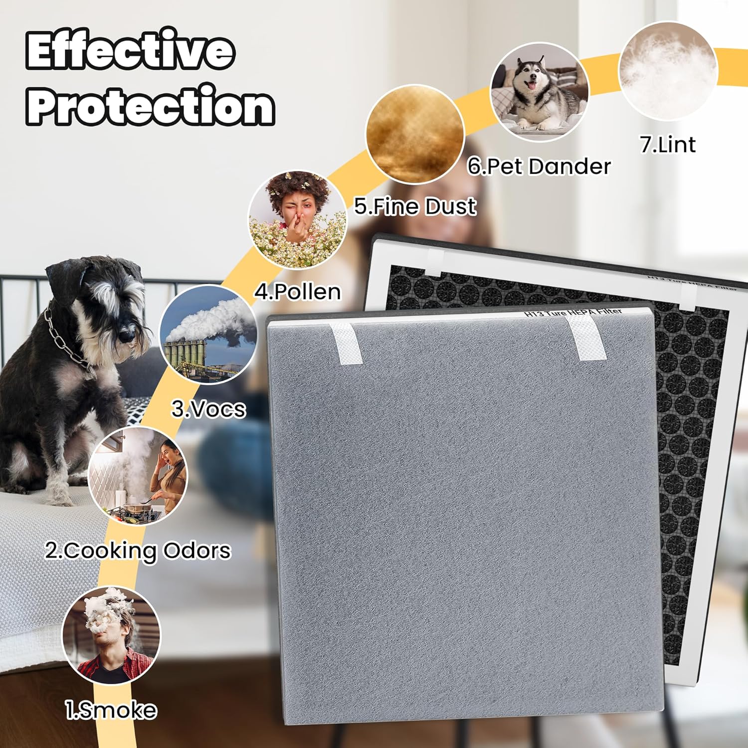 - Material : The air purifier filters are made of a 3-in-1 filtration system that includes fine preliminary filter, an H13 grade true HEPA and activated carbon filter. While the exact materials not specified, they can be inferred as Polypropylene (preliminary filter), Polyurethane (HEPA Activated Carbon (activated filter). The air purifier filters are made of a 3-in-1 filtration system that includes fine preliminary filter, an H13 grade true HEPA and activated carbon filter. Whil… See more