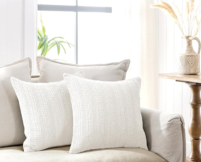 COCOPLOCEUS Off White Pillow Covers 18x18 Throw Pillow Covers Set of 2 Boho Decorative Pillow Shams Stone Washed Cotton Pillowcase for Couch Sofa Chair Bed Car