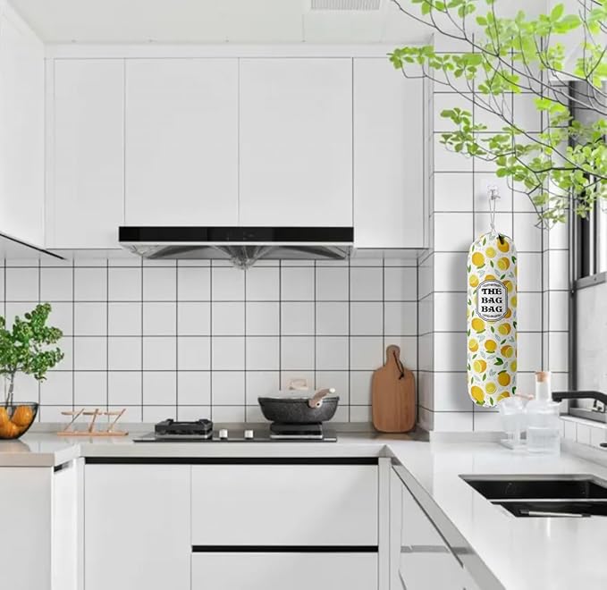The Bag Grocery Holder, Lemon Organizer for Shopping Bags, Wall Mount Plastic Storage Container Dispenser, Kitchen Gifts for Women Family Friends Grandma Mom (C-2)