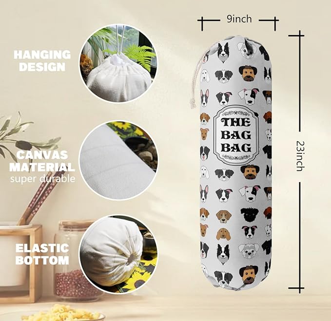 Grocery Bags Holder Organizer For Shopping Bags, Wall Mount Plastic Bags Storage Container Dispensers, Pet Lovers Home Kitchen Bags, The Bag Bag Grocery Bag Holder, Gifts For Women Dog Mom Dad (G-9)