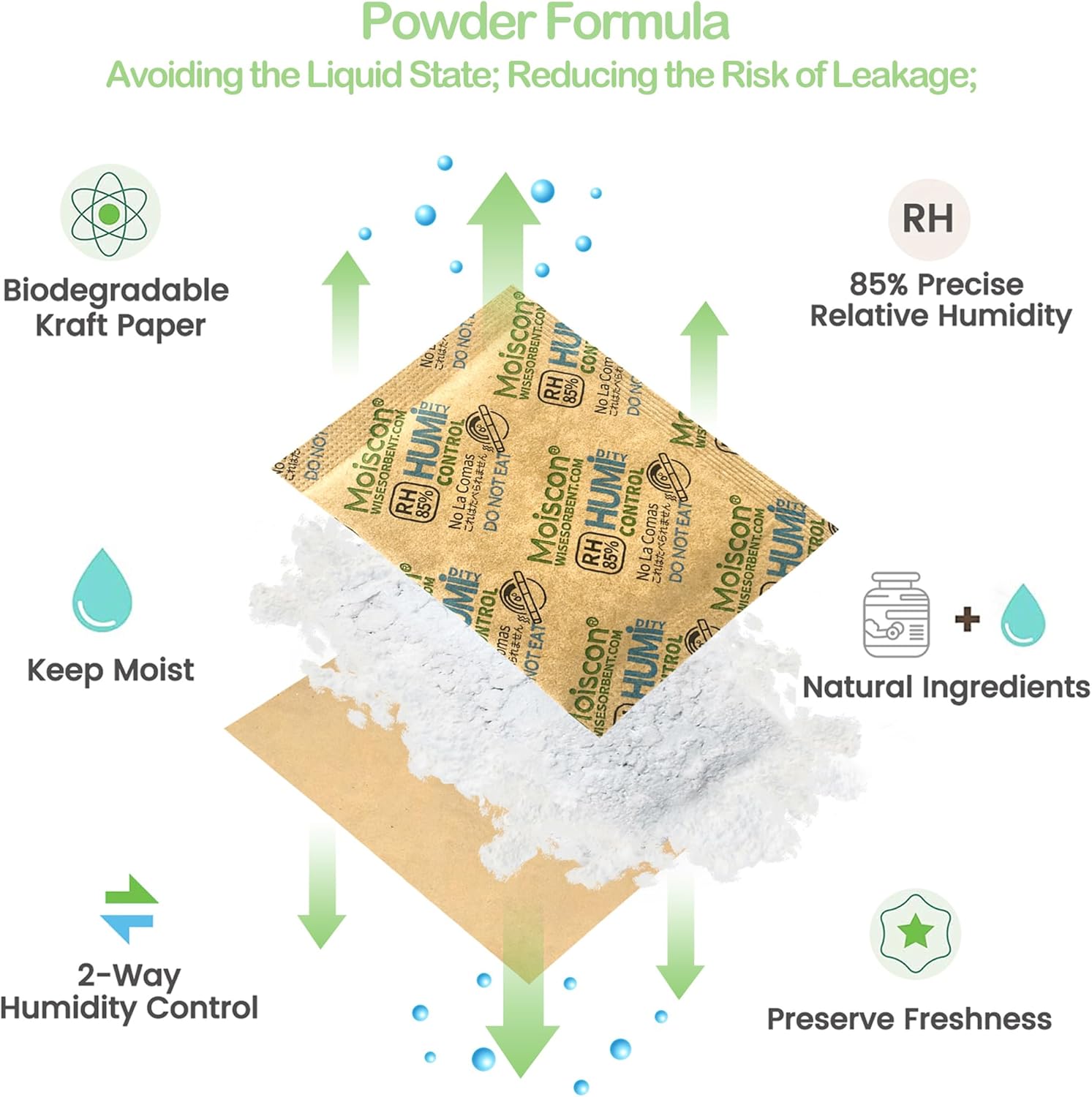 - 【Powder Formula—Utilizing Premium-Quality Raw Materials】: Humidity packs consist of silica, salts, and water, but they are in powdered form. Unlike other brands of humidity control packs, Wisesorb utilizes a powder formula, ensuring that even during the process of absorbing or releasing moisture, they won't turn into a liquid state. So, please do not mistake them as "dried out" and ineffective upon receiving the product. This design reduces the risk of leakage and ensures stable performance.