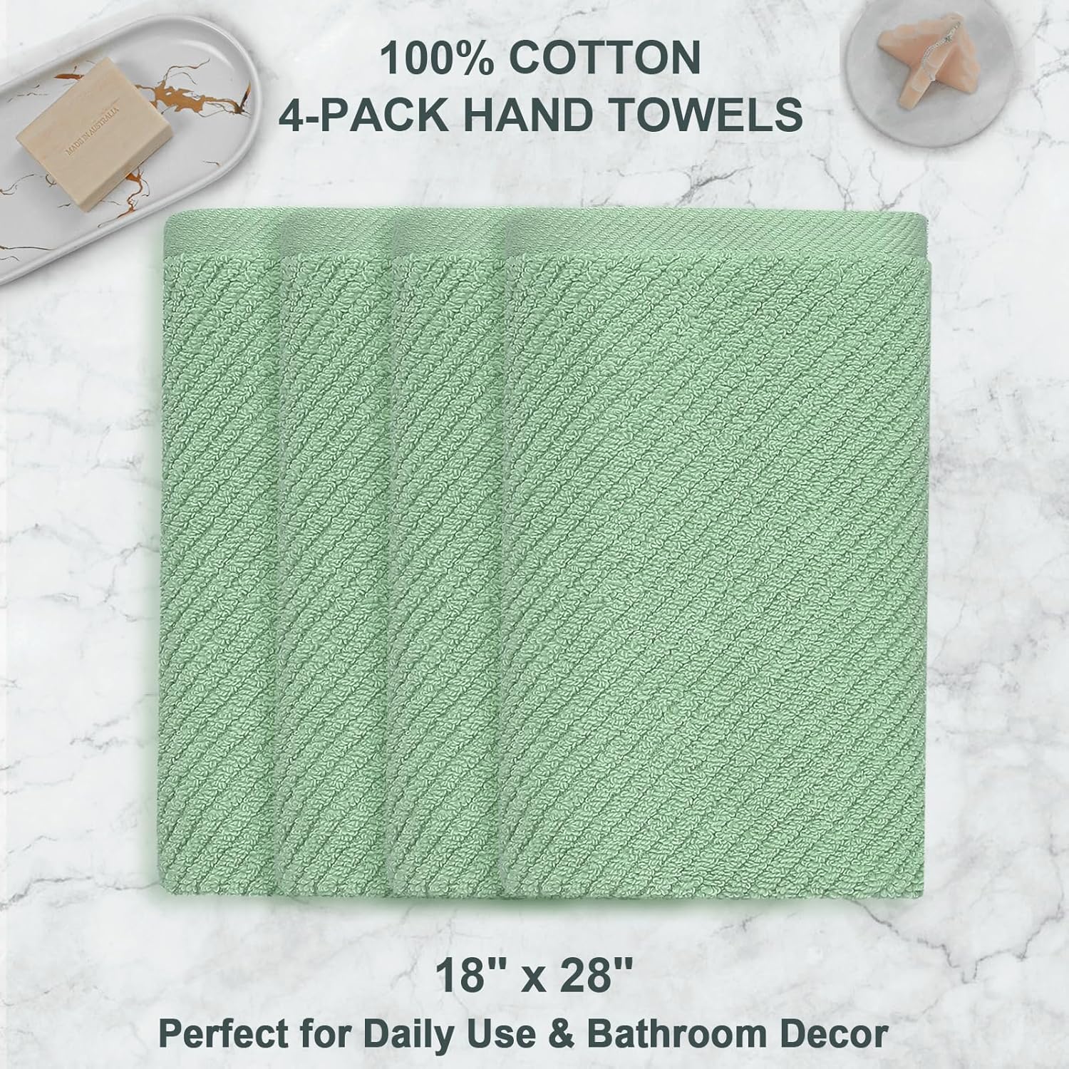 VOOVA & MOVAS Hand Towels for Bathroom Set of 4, Large 18" x 28", 100% Cotton | Lightweight | Thick | Quick Dry | Soft | Absorbent, Sage Green Hand Towels, Bathroom Essentials