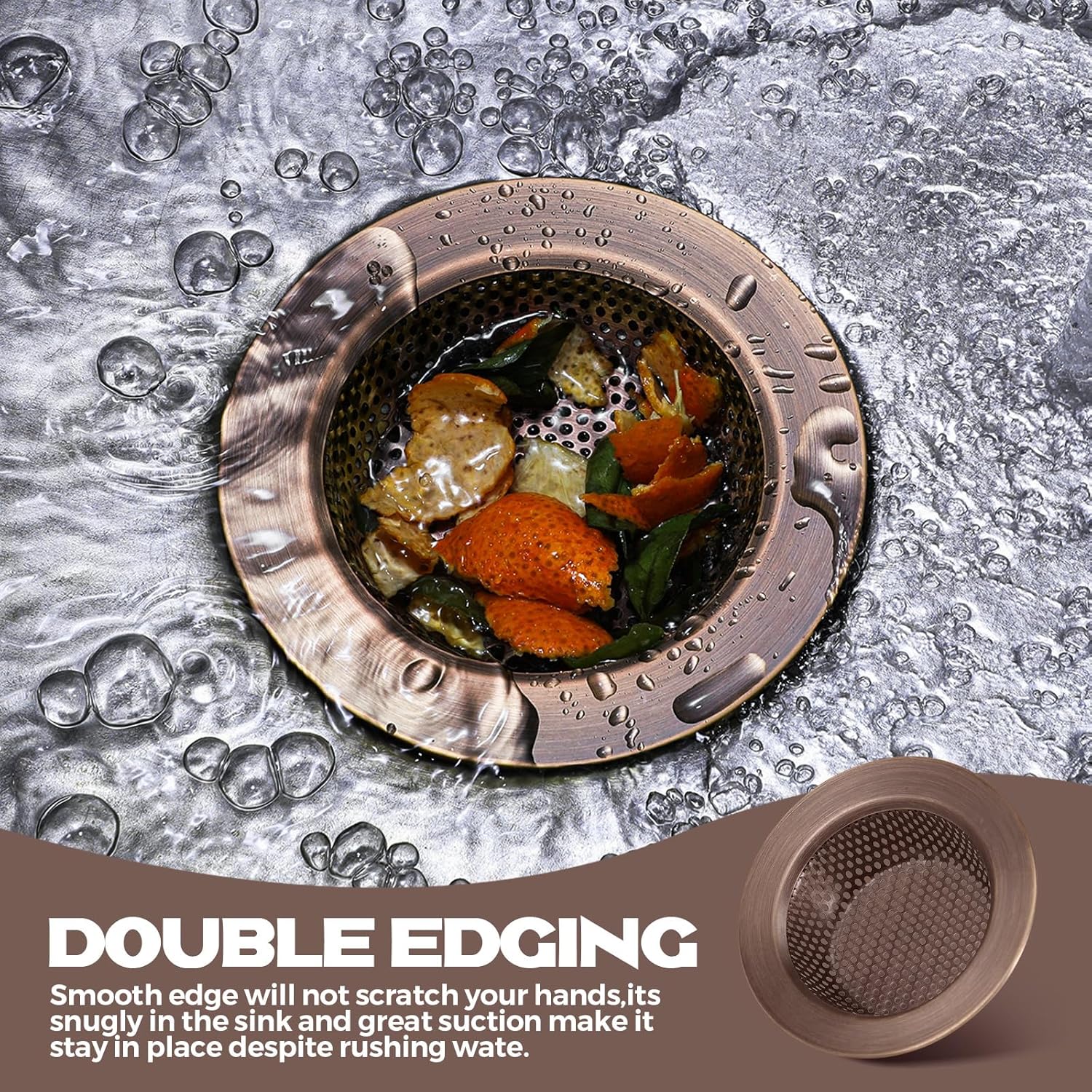 Retisee 2 Pcs Sink Strainer Stainless Steel Kitchen Sink Drain Strainer Basket Cover Mesh Hair Food Catcher, Large Wide Rim of 4.4 Diameter(Red Bronze)
