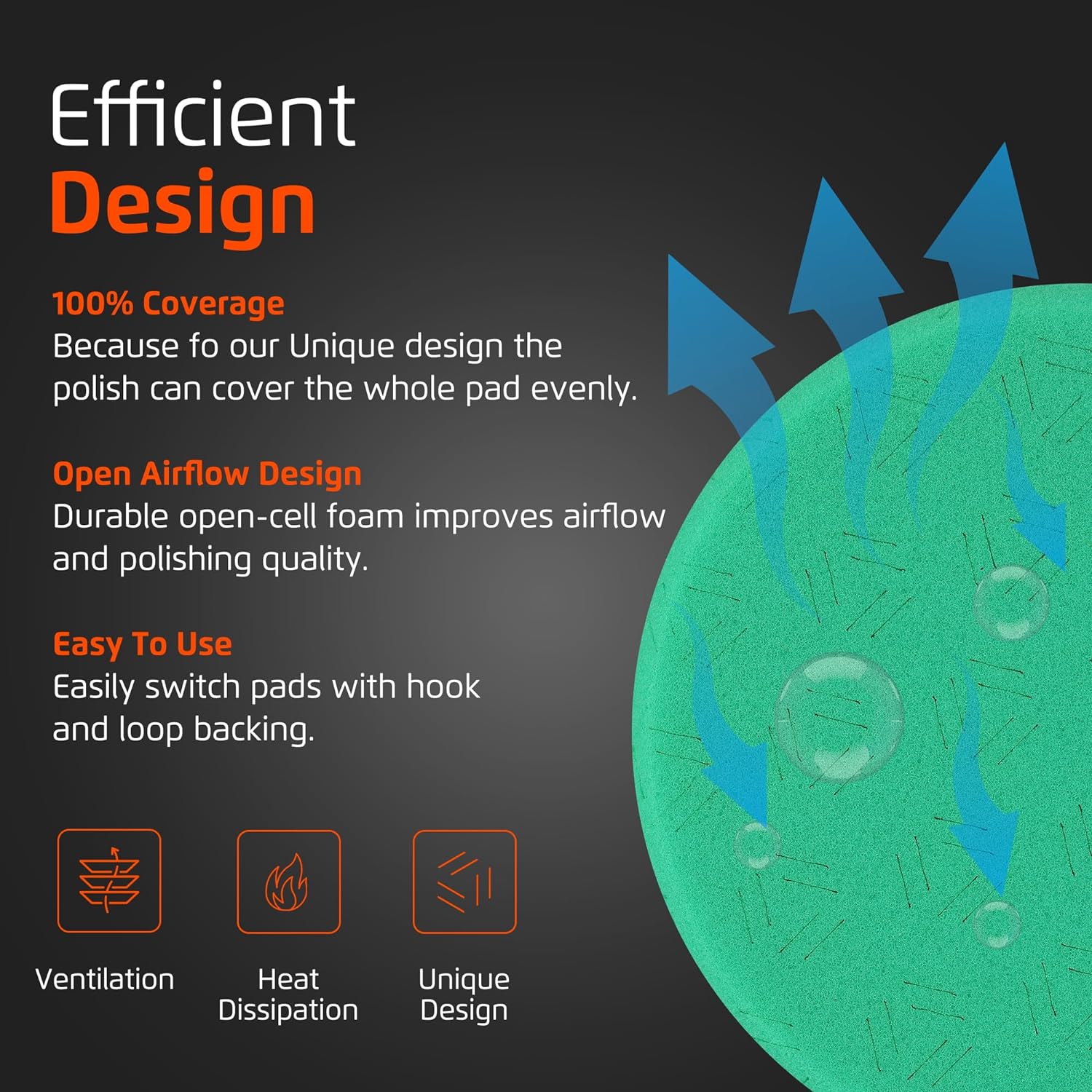- 🌟【Innovative Design for Efficiency】: Circular-shape with Unique Triangular grooves foam pads provide superior surface contact, reducing heat buildup. Achieve smoother and more effective polishing compared to traditional pad shapes.