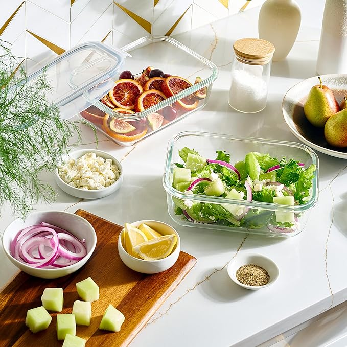 - VERSATILE MEAL PREP CONTAINERS: These containers are designed to meet all your kitchen needs. With 2 airtight lids included, they are perfect for organizing your pantry, fridge, or countertop. These containers. are a versatile solution for meal prep, storing, freezing, microwaving, and even baking. From soups and salads to cookies and casseroles, these containers can handle it all. Say goodbye to plastic and elevate your kitchen with this glass storage set.