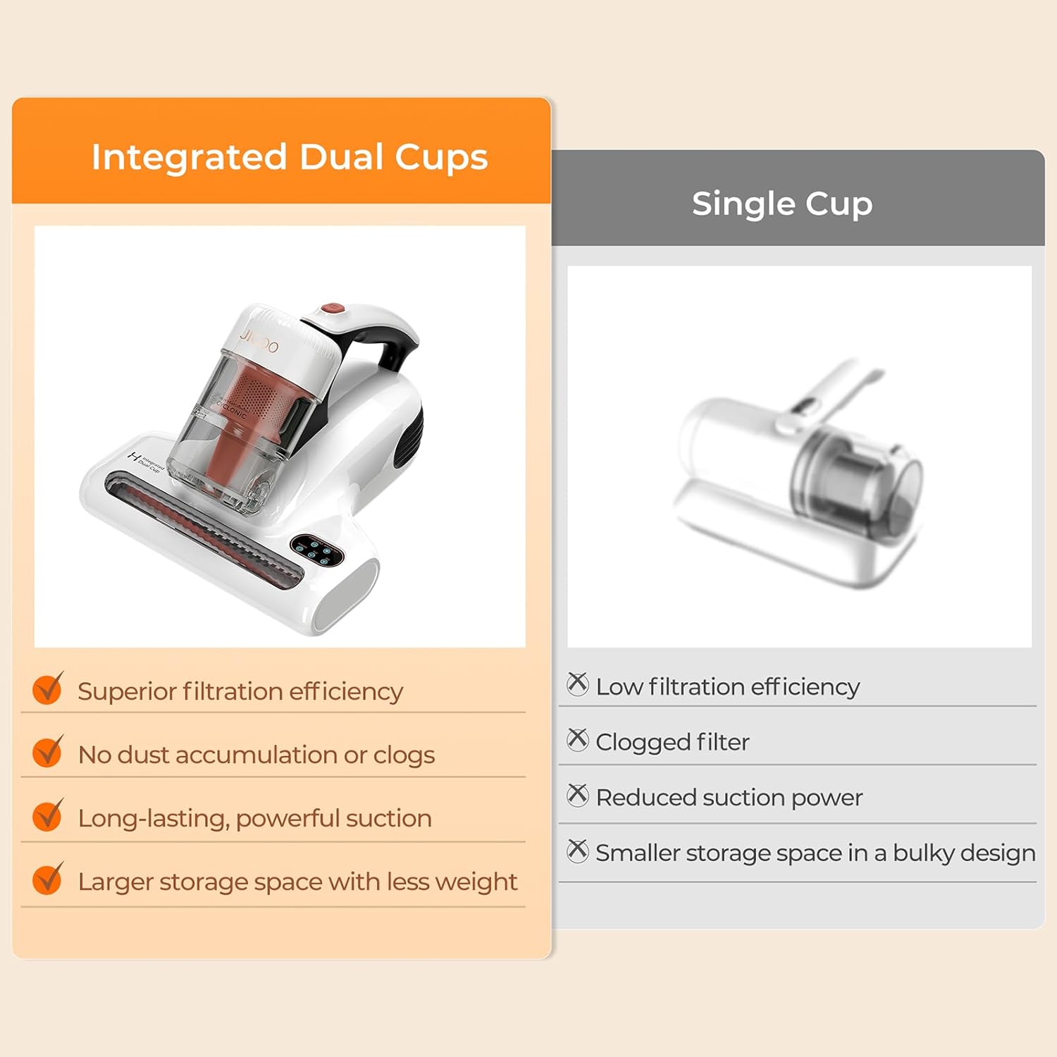 - ăHigh Efficiency HEPA FiltrationăOur mattress vacuum cleaner with premium HEPA filter that deeply purifies and releases fresh air,captures 99.9% of particles as small as 0.3 microns, separate dust and hair without any leaks, ensuring clean air output and block the twice pollution effectively. Original integrated upper and lower dual-cup structure, patented dual cyclone filtration tech, for deep cleaning mattresses and sofas, bedding, carpets more efficient , achieves optimal results.