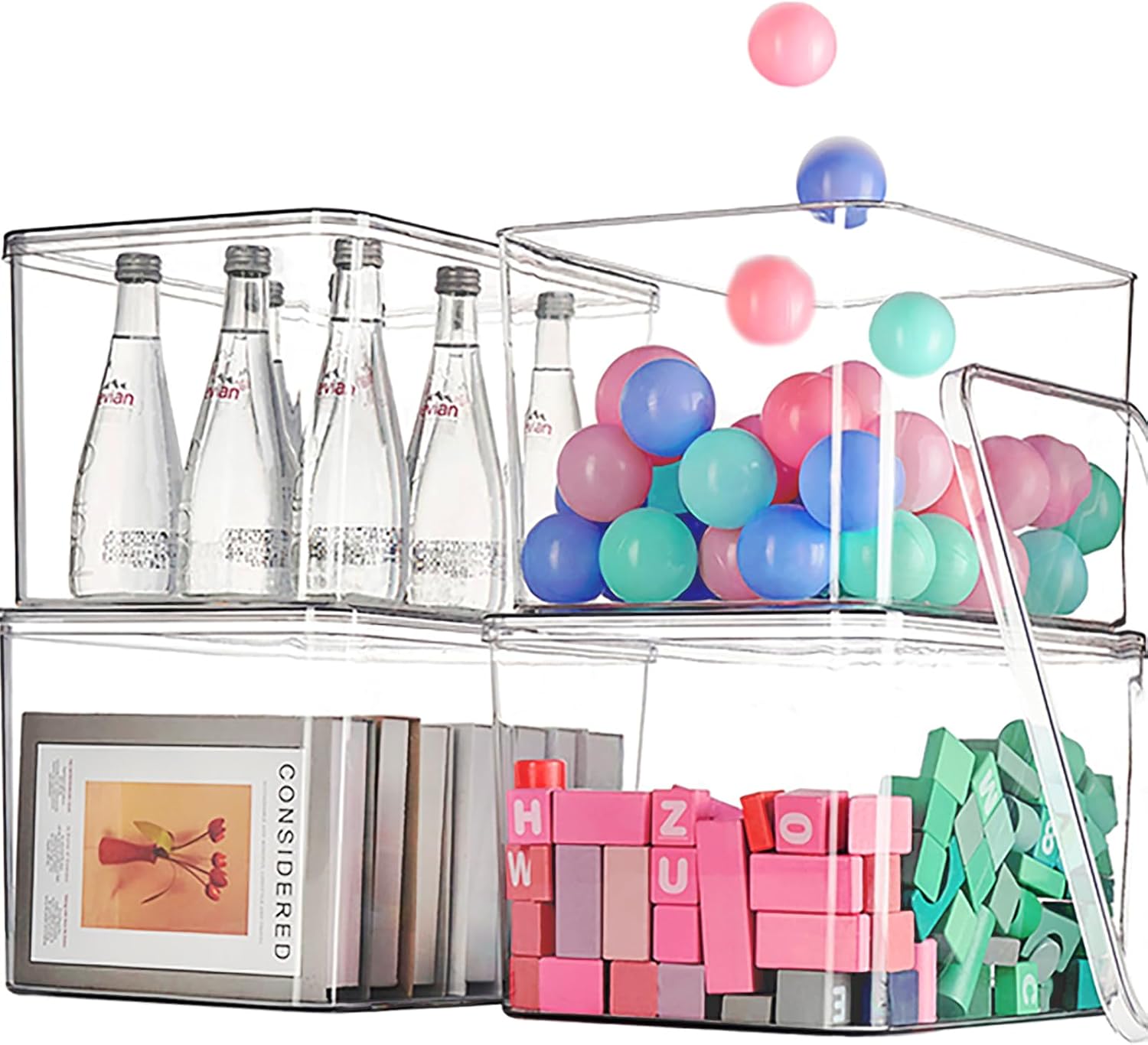 Clear plastic storage bins with LIDS-4packs,storage containers for snacks, cosmetics, books, dog food, Storage Organizer for Nursery,Kitchen, Living room,Bedroom, Bathroom, Office