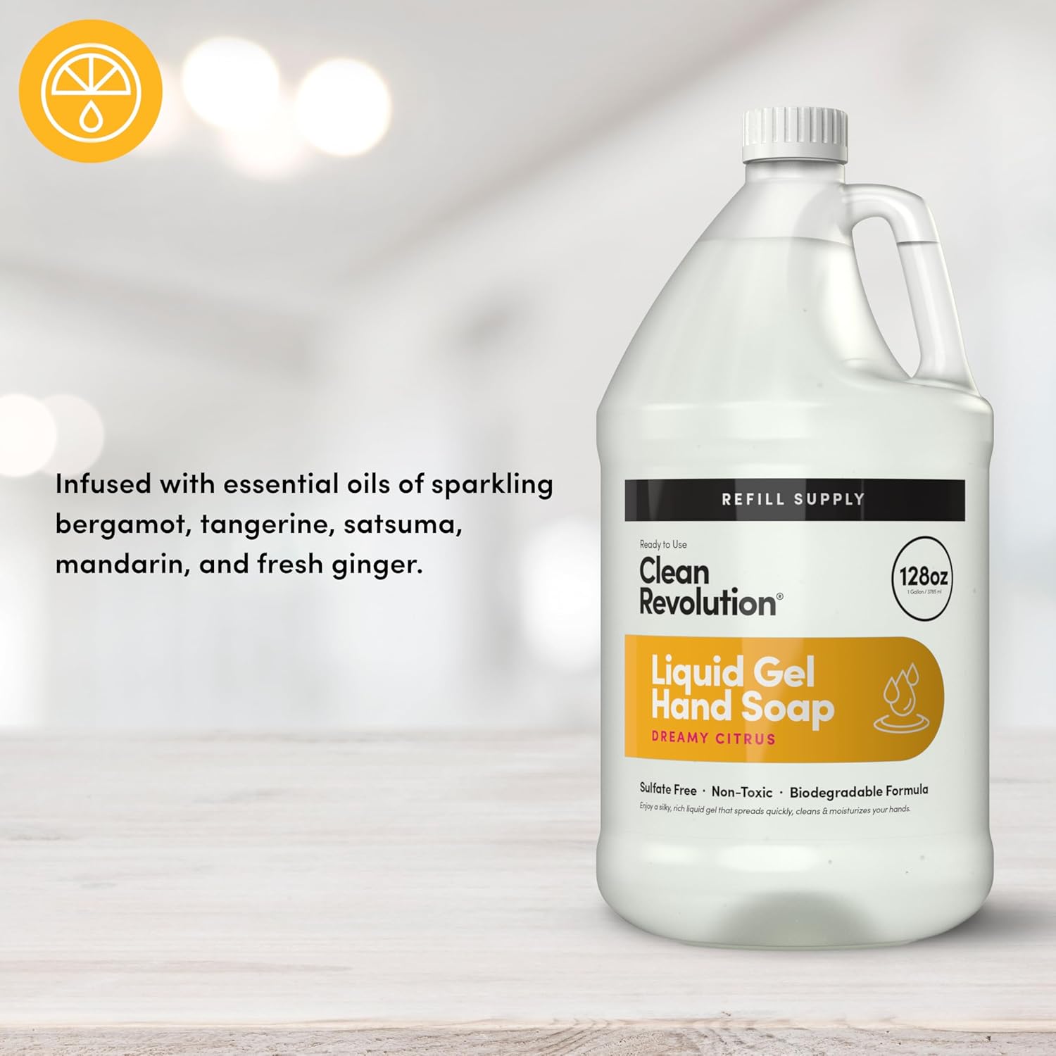 Clean Revolution Liquid Gel Hand Soap, Silky Rich Liquid, Quick Lather, Fast Rinsing, Contains Real Essential Oils (Dreamy Citrus) 128 Fl Oz