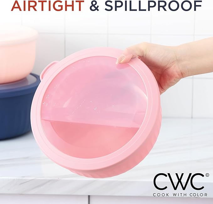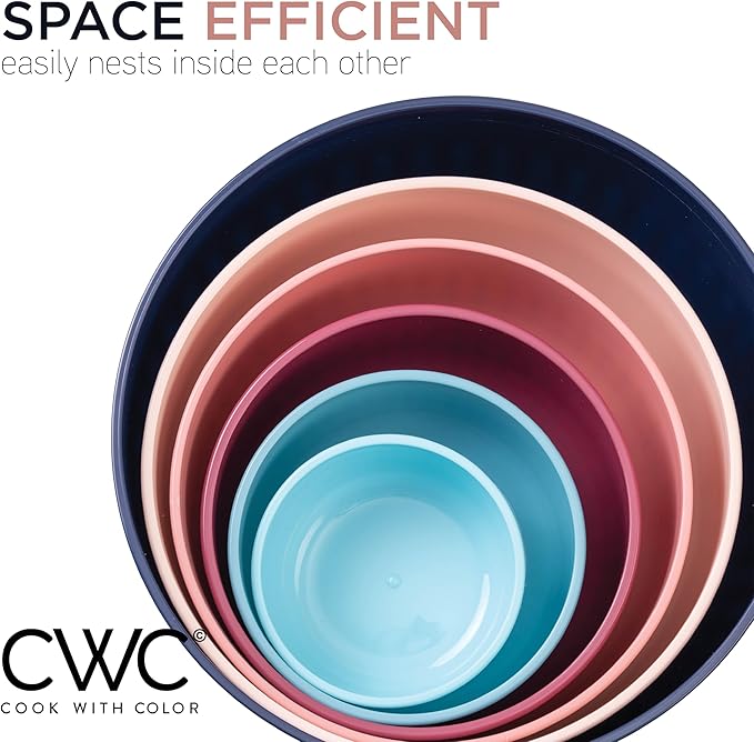 - Cook with Color 12 piece plastic mixing bowl set - non slip bowls with lids; easy to clean, sturdy mixing bowls.