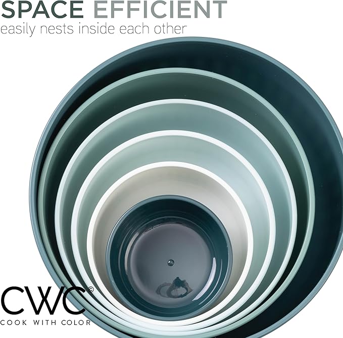 - Cook with Color 12 piece plastic mixing bowl set - non slip bowls with lids; easy to clean, sturdy mixing bowls.