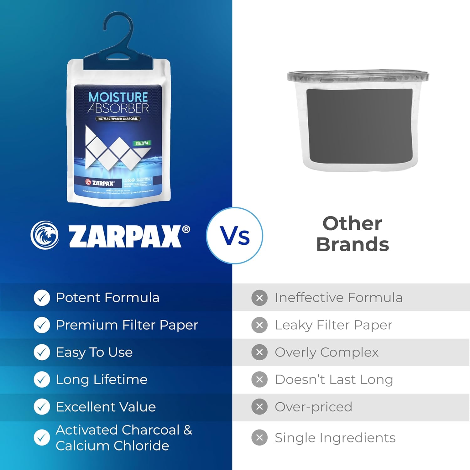 - TAILORED FOR HOME USE: Crafted with the needs of homeowners in mind, these moisture absorbers are meticulously designed to deliver optimal results in your home. Say goodbye to musty odors and dampness as you enjoy a cleaner, drier, and more comfortable living space with Zarpax Self-Standing moisture absorbers.
