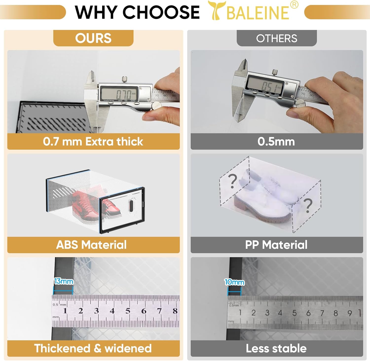 - [THICKENED MATERIAL] Clear shoe boxes are crafted from BPA-free thickened ABS and PP material, ensuring durability and longevity. They are sturdy and able to withstand daily use without cracking or breaking. Multiple ventilation holes on the back of the shoe case to ensure air circulation and prevent odors.