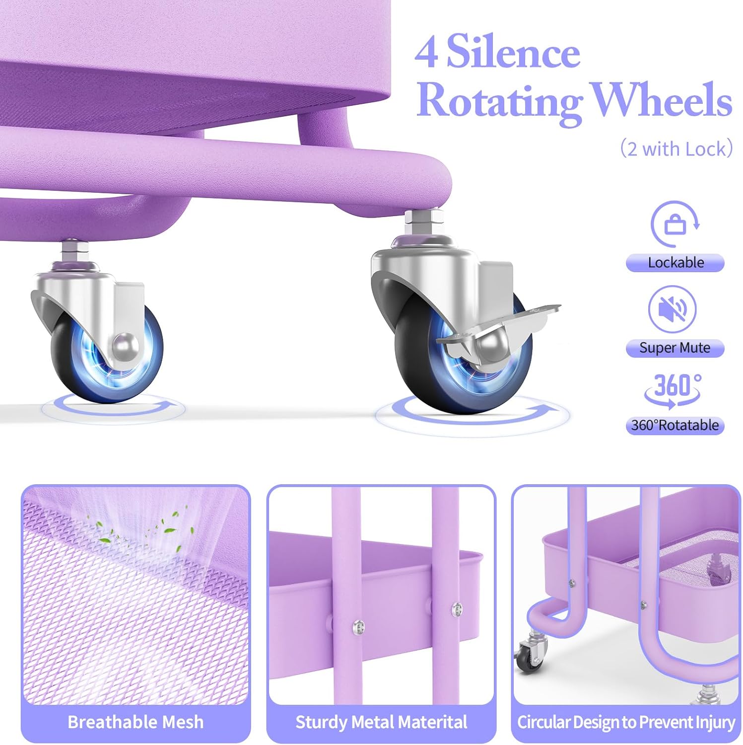 - 【Perfect Rolling Carts with Wheels】The rolling utility cart equipped with 4 360° rotating wheels, and two of them are lockable, Whether you're navigating tight corners or moving through crowded spaces, this utility carts with wheels effortlessly adapts to various environments. Convenient for your storage.