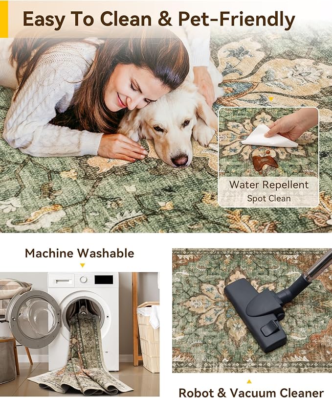 - Machine Washable Rugs Easy to Clean: the surface is water-repellent which allows for easy cleanup when beverages are accidentally spilled, as the liquid is less likely to seep in. Simply use a towel to promptly wipe away any spills. For localized stains, you can use a cleaning agent and a damp cloth for spot cleaning, or utilize a vacuum cleaner for overall maintenance. You can also put the rug in a washing machine as it is a machine washable rug.