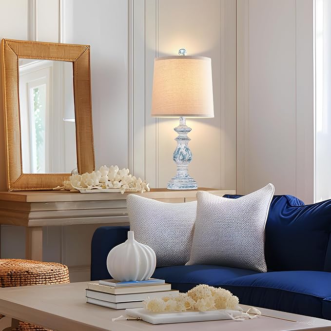 PARTPHONER Traditional Table Lamp Set of 2, Rustic Farmhouse Table Lamps for Living Room Bedroom, 22" Bedside Desk Lamps Vintage Nightstand Lamps with Linen Shades, Washed Blue