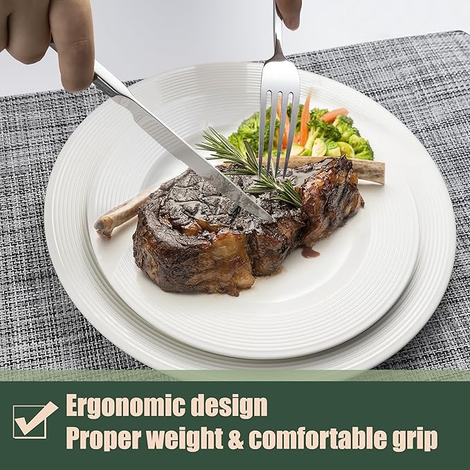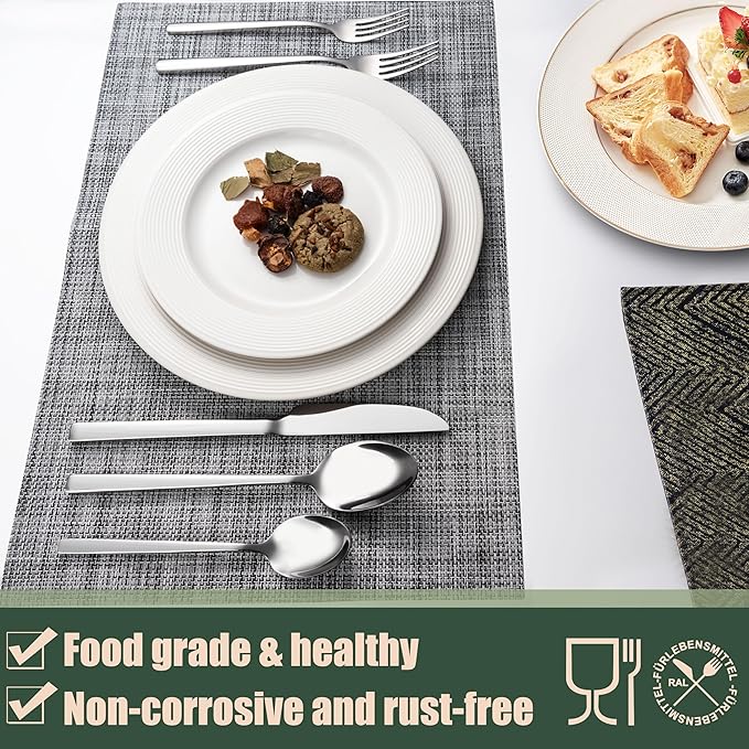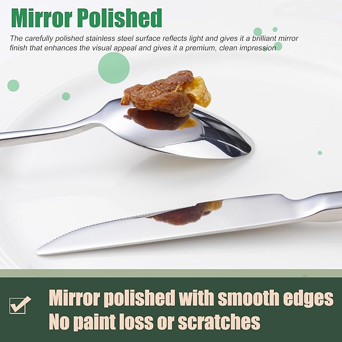 - 【Excellent Quality】The flatware set is crafted from premium stainless steel, sturdy and durable, not easily bent and rusted. Thick but not bulky, well balance.It is the ideal choice for your tableware set.