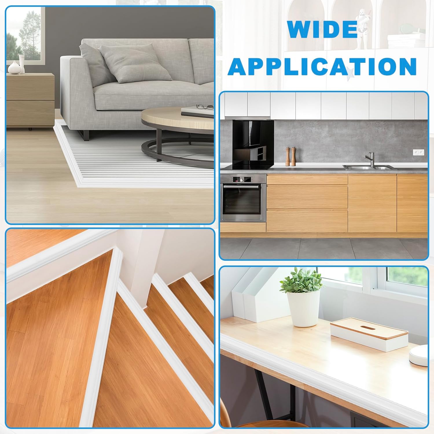 - Wide Application: The corner molding is highly versatile and can be applied to a wide range of surfaces, including tile, plastic, marble, metal, glass, wood, and smooth walls. It is suitable for various spaces such as bathrooms, bedrooms, living rooms, kitchens, offices, and toilets. Additionally the corner trim can be used on stairs baseboards ceilings frames and cabinets to enhance aesthetics and safety.
