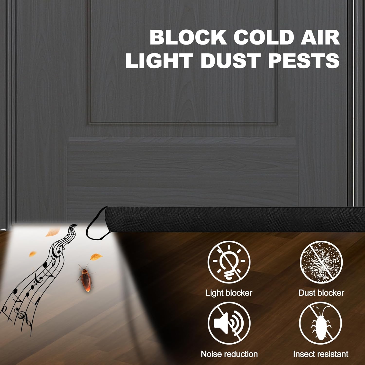 - Multi-Function Door Noise Blocker - The door draft stopper can keep dust and wind out of the door, and also can effectively block excessive noise and light through the cracks of your bedroom at night. This fabric draft stopper works wonders on your front door, bedroom, closet, bathroom, patio, sliding doors, or even your windows. Good home supplies for everyone.