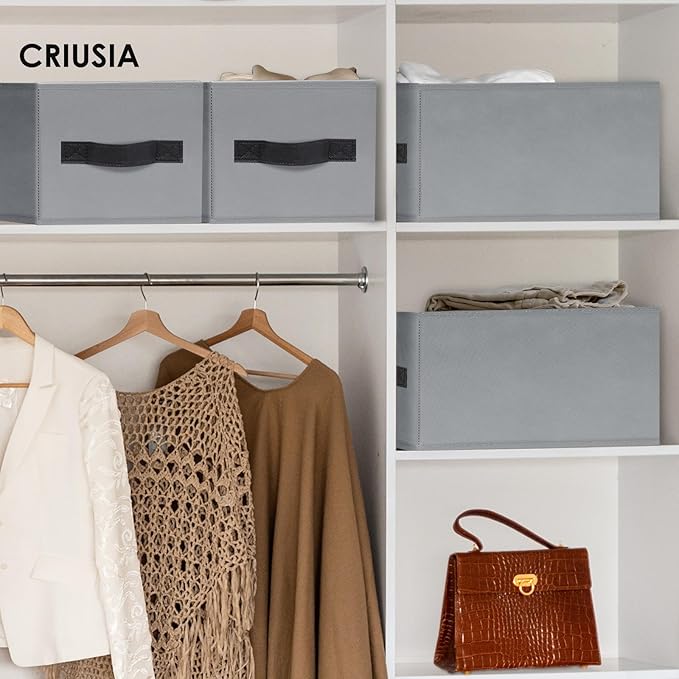 Criusia Large Blanket Storage Basket - 6 Pack Fabric Storage Bins for Closet Shelf, Storage Baskets for Clothes Toys, Home Organization Bins with Handles for Living Room, Nursery, Bedroom